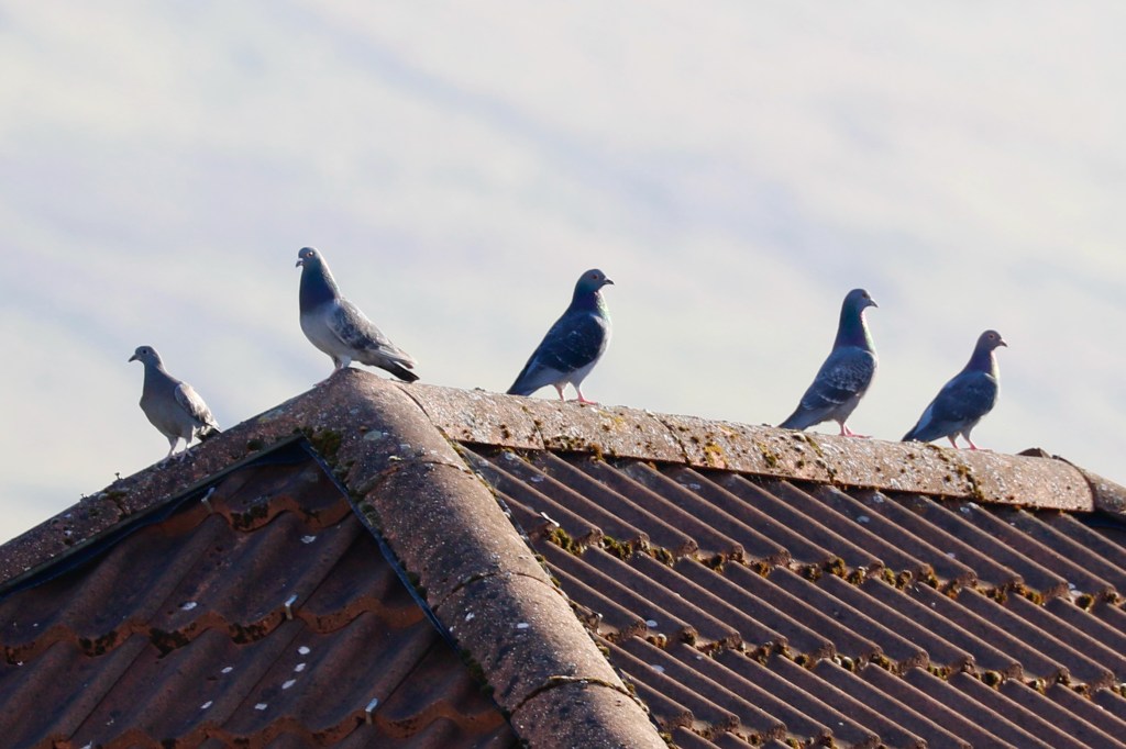 It was a cold morning with a light frost still on the car, but the sky was blue and clear. I was no sooner out the house than I saw the usual gang of Feral Pigeons warming themselves on the house roof opposite.