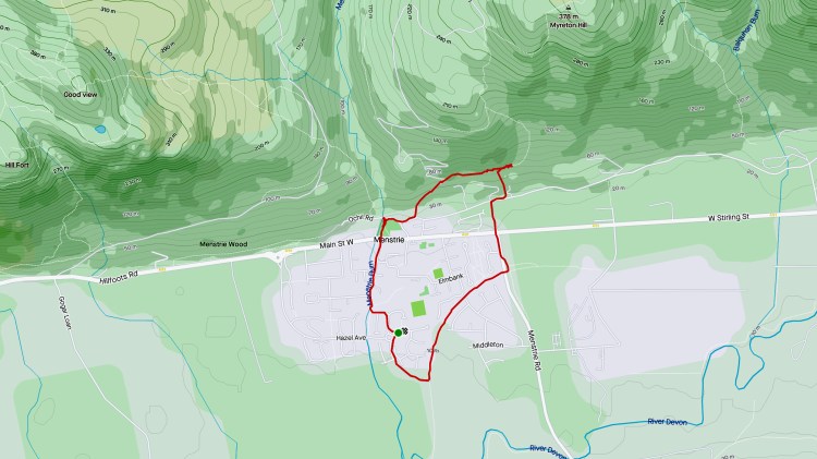 We walked through the estate to the Menstrie Burn and continued through the village.