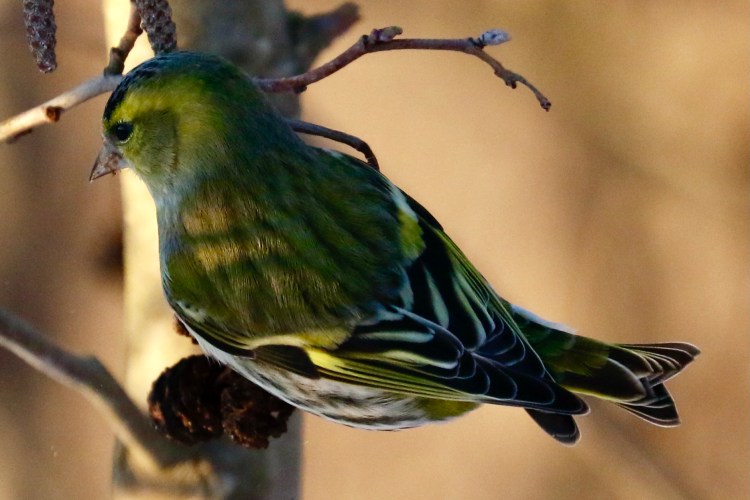 The Siskin is a stunning yellow bird, particularly the male, whilst the Redpoll has the red dot on the forehead after which it is named.