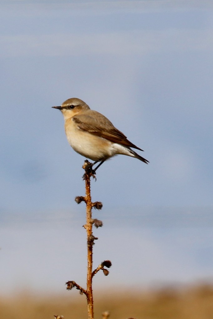 We saw several Northern Wheatear too in a mix of habitats – farmland, marsh and high moorland. This is a striking bird with a dark eyestripe, especially strong on the male – somewhat like a bank robber’s mask. Some of these birds will be here to breed but others are just travelling through and were of the larger Greenland subspecies.