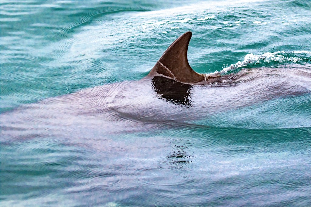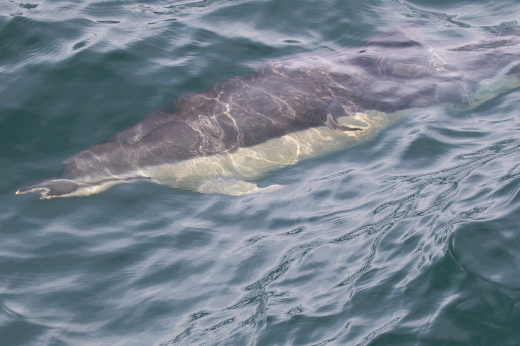 These dolphins interacted differently with the boat, frequently jumping out of the water (porpoising) and jumping onto their side. It was also a much larger pod with several dozen individuals together. Unlike their Bottlenose cousins Common Dolphins are not loyal to a family group and frequently join together in different pods and sometimes into groups a thousand strong.