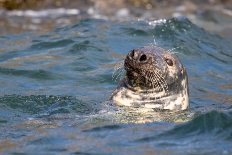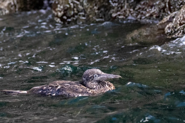 We also came across several juvenile Gannets in the water, not yet able to fly. Juvenile Gannets have the same basic shape as the adults but their plumage is completely different which means many people don’t realise they are Gannets at all. After a life of being cared for by two parents they leave the nest weighing more than their target weight and are unable to fly as a result. It will be a few weeks before they master this skill.