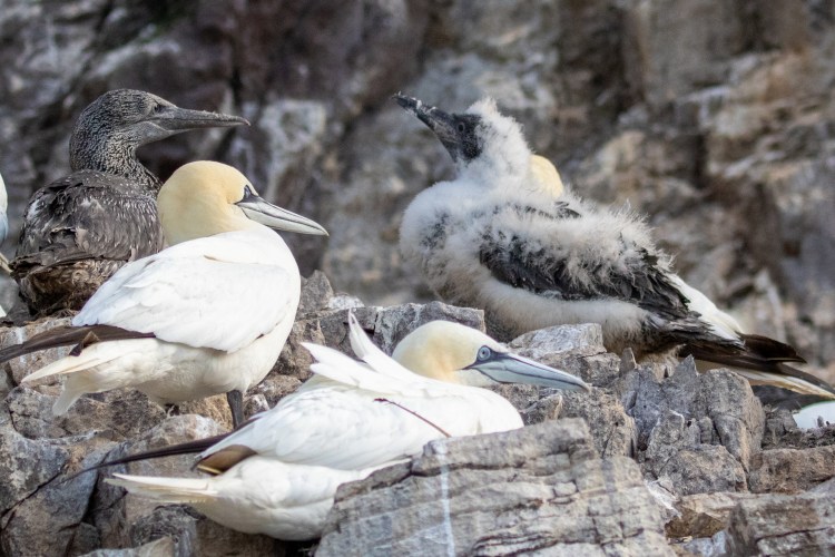 We were able to pick out more Gannet chicks (known as guga’s) some still with their downy covering others moulting this off. Some were practicing their flying skills.