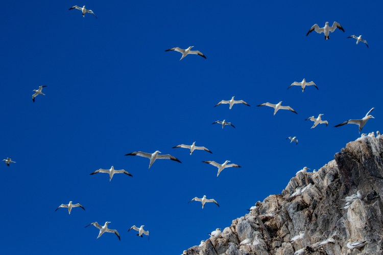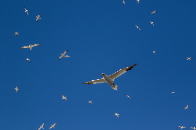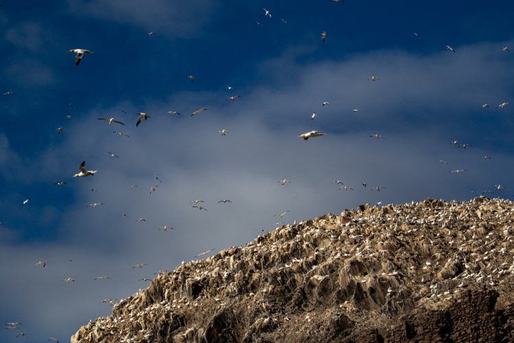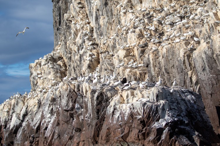 As we approached Bass Rock the air started to fill with Gannets, our largest native seabird. Quite a sight.