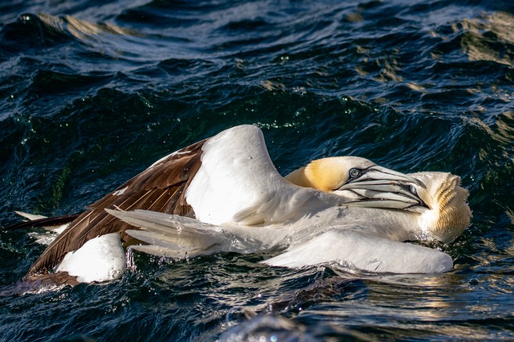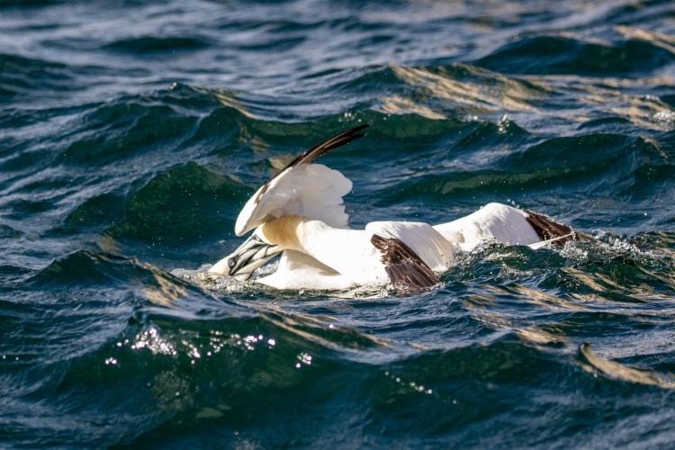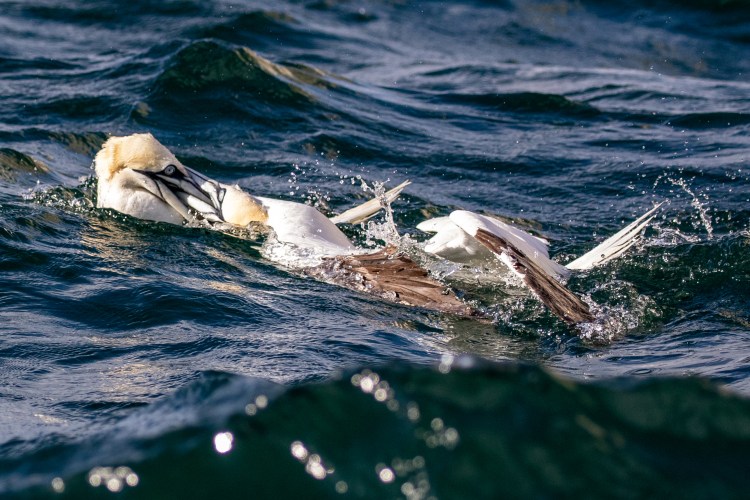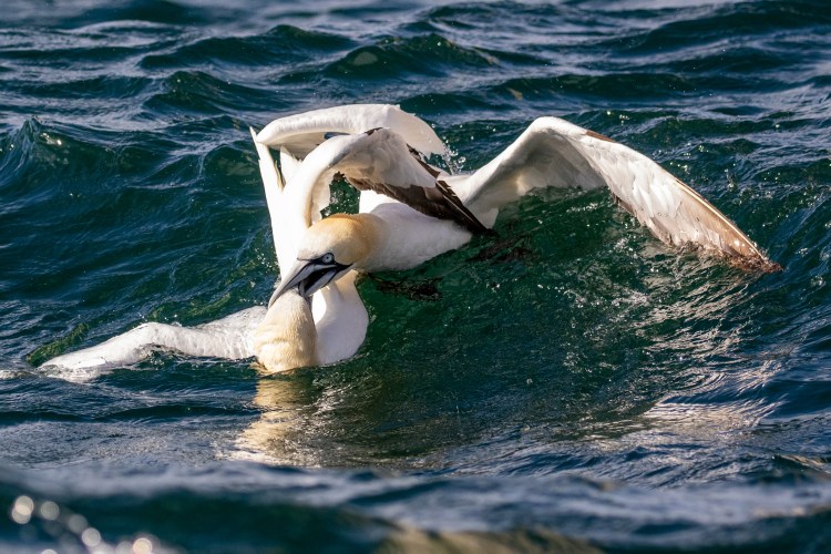 As our boat approach the Gannets stopped fighting each other to get away from us and I felt we effectively broke up the contest. This was probably good news for the weaker bird.