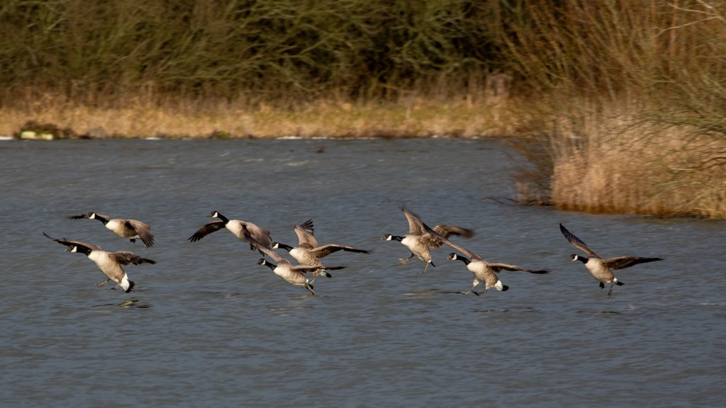 At this point I can see a large dog running across the field where the Geese had been grazing, no owner in sight. Sure enough the whole flock take to the air and fly to the middle of the loch for safety. A couple of Herons emerge from the same field, too spooked by the dog. I feel a bit sorry for the Geese after dissing their pedigree beforehand. The dog is now the focus of my distain or more accurately the irresponsible owner.
