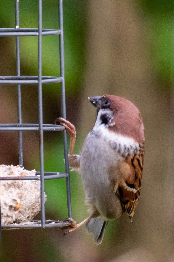 My first Tree Sparrows of the year are on the feeder. These are the country cousins of the town dwelling House Sparrows and a lovely bird with all brown cap.