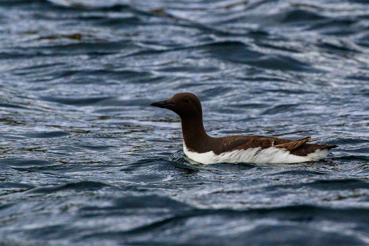 There were lots of Puffins and Common Guillemots in the water too. One Guillemot caught my eye rising out of the water and flapping its wings, I fired off a burst of shots hoping one would be in focus. It is quite hard taking photos from a moving boat of a moving bird, keeping the bird in the shot and using a fast enough shutter speed to freeze the moment. I find this a tricky bird to process in Lightroom too – if I expose to see the eye the bird ends up very light brown and not how I feel the bird really “is”. So not much eye in these shots which I don’t really like as that really is the focal point of the head which is the focal point of the bird. If anyone knows a solution to this leave a comment and help me out.