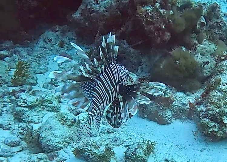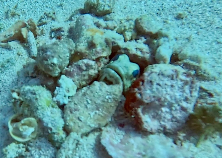 We enjoyed this reef so much that this time we made a return visit to another part of the same reef and this time there were a lot more fish around. As well as the ubiquitous shoals, we saw tiny Jaw Fish, barracuda, sea cucumbers and the deadly poisonous Lion-Fish.