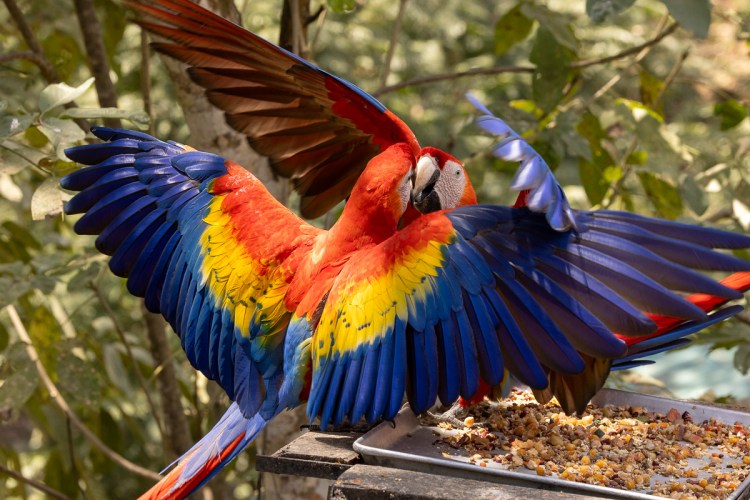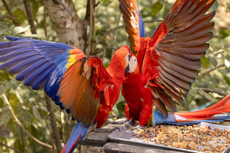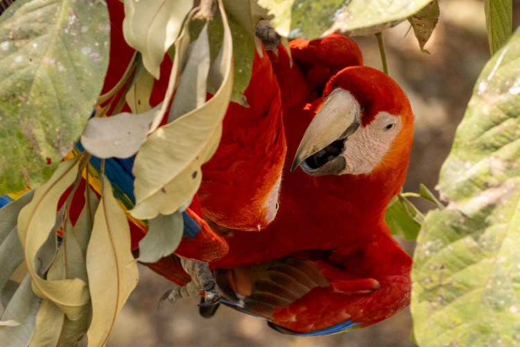 But really it was the Macaws flying all about us and coming back for food at the fruit tables that were the stars of the day. These birds blend the definition of wild (not a criticism, it is kind of built into the purpose of the place to support Macaw’s after release). They are free to come and go and they include breading pairs which are adding to the population. But the majority have been bred in captivity and released.