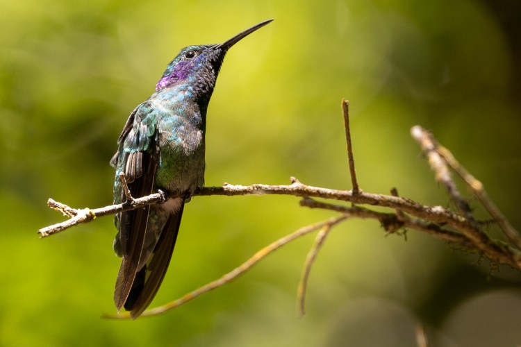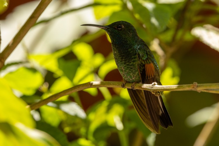 After walking the trails it was time for lunch and we visited the coffee shop which runs the Monteverde Hummingbird Gallery. Wildlife photography doesn’t get easier than this, eating cake and drinking a Latte whilst photographing 10 species of beautiful Hummingbirds. Smallest was the Magenta-throated Woodstar which almost never landed (probably expected to get bullied off). The largest was the Violet Sabrewing which definitely threw its weight around.