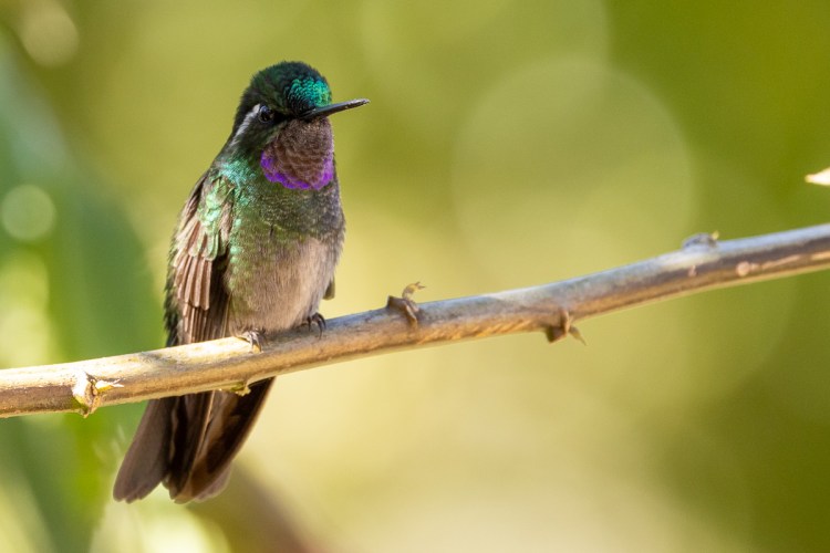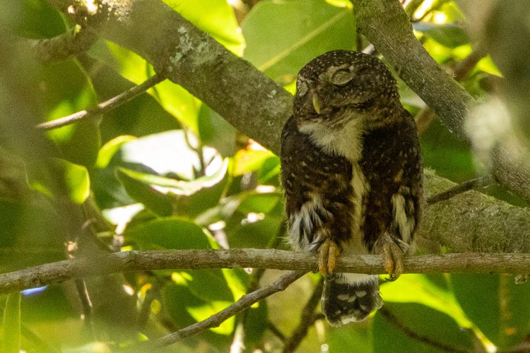 We tried one more place hoping for woodcreepers but instead we found a much rarer bird – the Costa Rican Pygmy Owl. We heard it for a long time before seeing it and took about 20 minutes trying to track it down before I eventually spotted it to the relief of our guide. I also took a couple of pictures of a hummingbird which offered brief views. I only ID’d the bird back at the lodge from the photos as the Purple-throated Mountain Gem – interestingly eBird doesn’t think it is in this area.