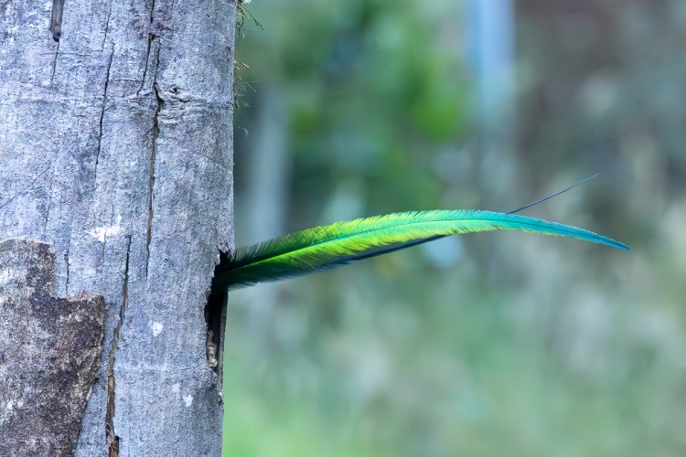 The next morning began with the alarm at 4.45 and a 45 minute drive to the Paradise Quetzal Lodge where we had booked one of their guides for the morning. First David took us to a viewpoint for the Resplendent Quetzal where a pair were excavating a nest.