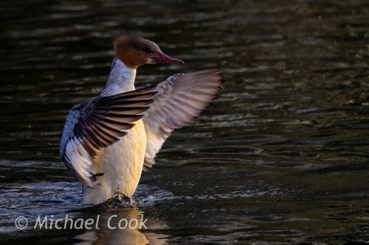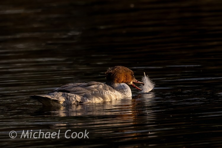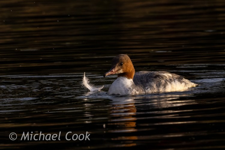 Paul was also acting as a spotter for me by noting birds and/or behaviour I might have missed. Whilst I was photographing the Heron he pointed to a female Goosander which was playing with a feather. This kind of interaction always adds a story and a focal point to the shot.