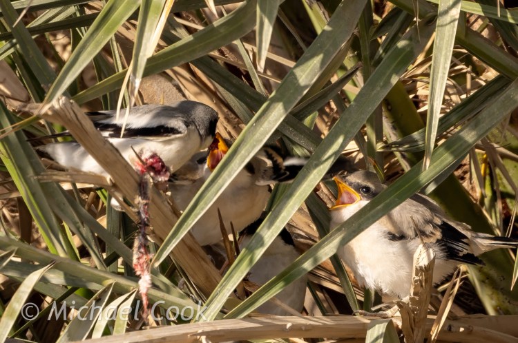 Our guide spotted a Great Grey Shrike on a wire and we followed as it dived for some prey and then flew into a nearby bush. We were delighted to find a family of 6 birds and watch the parent rip the prey apart impale it on a spike (they are called butcher birds for this reason) and then feed it to the babies.