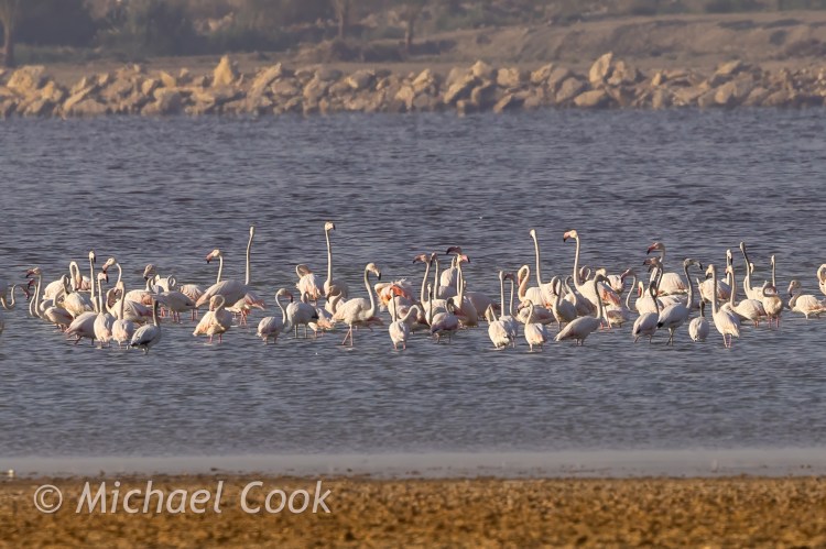 At the end of the lake we were surprised to find several Kentish Plovers in desert landscape and more expected were the Greater Flamingos in good numbers.
