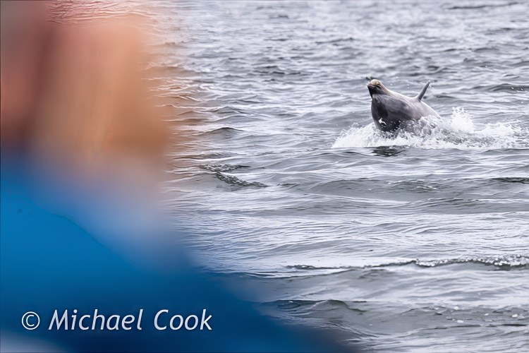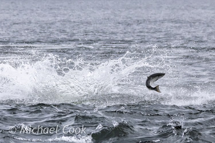 Towards the end of our time the Dolphins were obviously chasing larger Salmon and some of these jumped clean out of the water trying to escape adding to the drama.