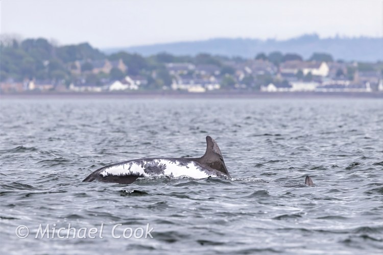 One dolphin had strange markings and a wee bit of research revealed this to be “Spirtle”. Spirtle was stranded for 24 hours in May 2016 and suffered really bad sunburn. She was refloated and miraculously survived and seems to now be thriving. You can read about the original incident here on the BBC News page.